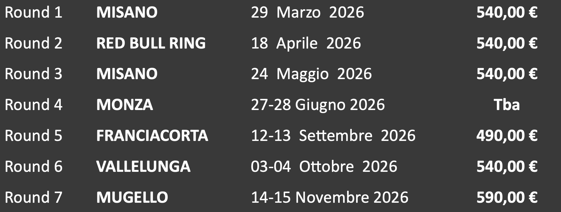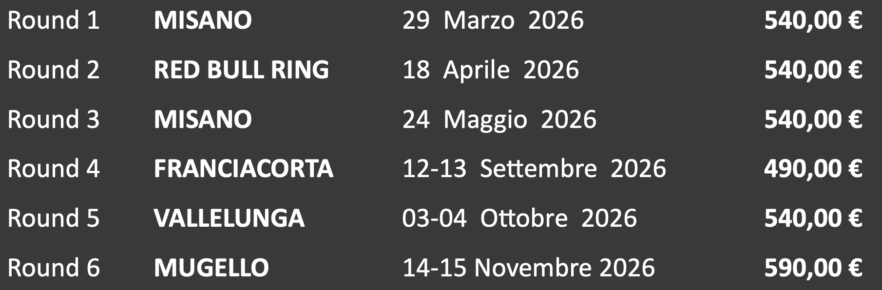 Tutti gli eventi Speed Cup